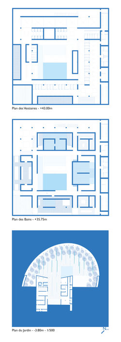 Le parti-pris de la monumentalité est une entrée du projet qui est un vecteur d’attractivité, une impulsion pour la régénération du centre urbain. Le programme des Bains fédère et rassemble les habitants autour d’une tradition partagée.